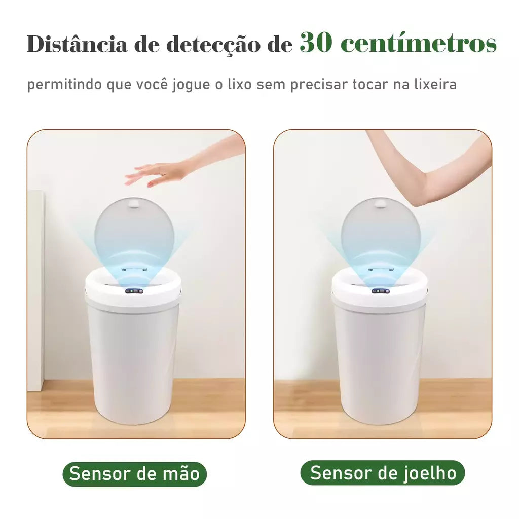 Com uma altura de indução de 30cm, nossa lixeira abre automaticamente quando um objeto está a uma distância de 0-30cm da área de detecção.